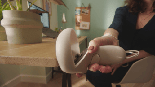To emphasize the mechanics of setting up and working within Workrooms, we introduced abstract graphical shapes that followed the users’ motions. This helped illustrate interactions more clearly